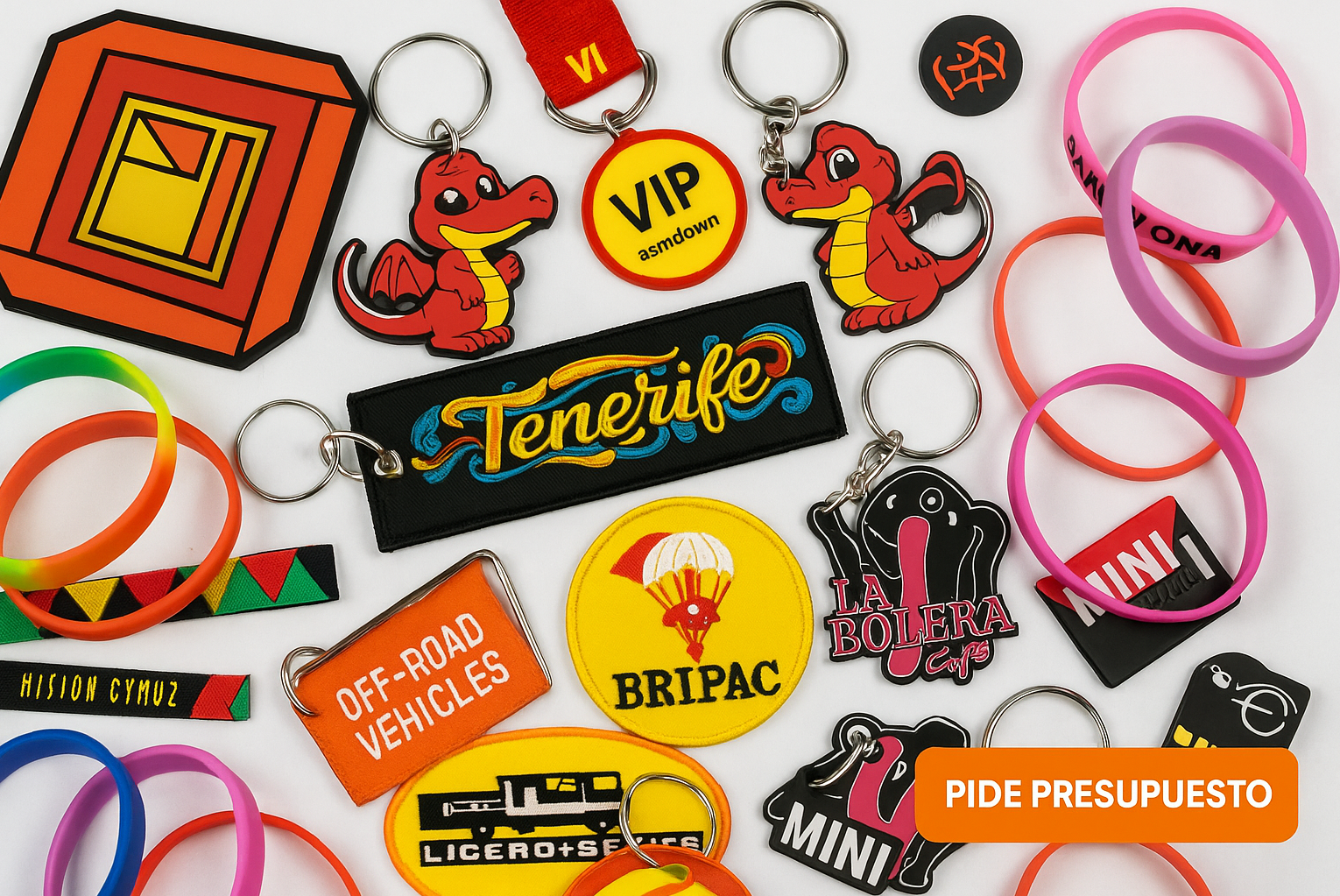 Llaveros promocionales: de metal, silicona, bordados o PVC. Ideales como regalo de empresa o recuerdo de eventos.